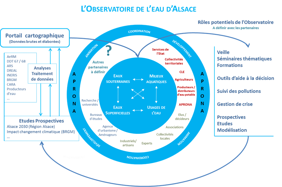 Suite à une décision de son Conseil d’Administration prise en 2011, l’APRONA a été mandaté pour développer et coordonner un Observatoire de l’eau en Alsace.